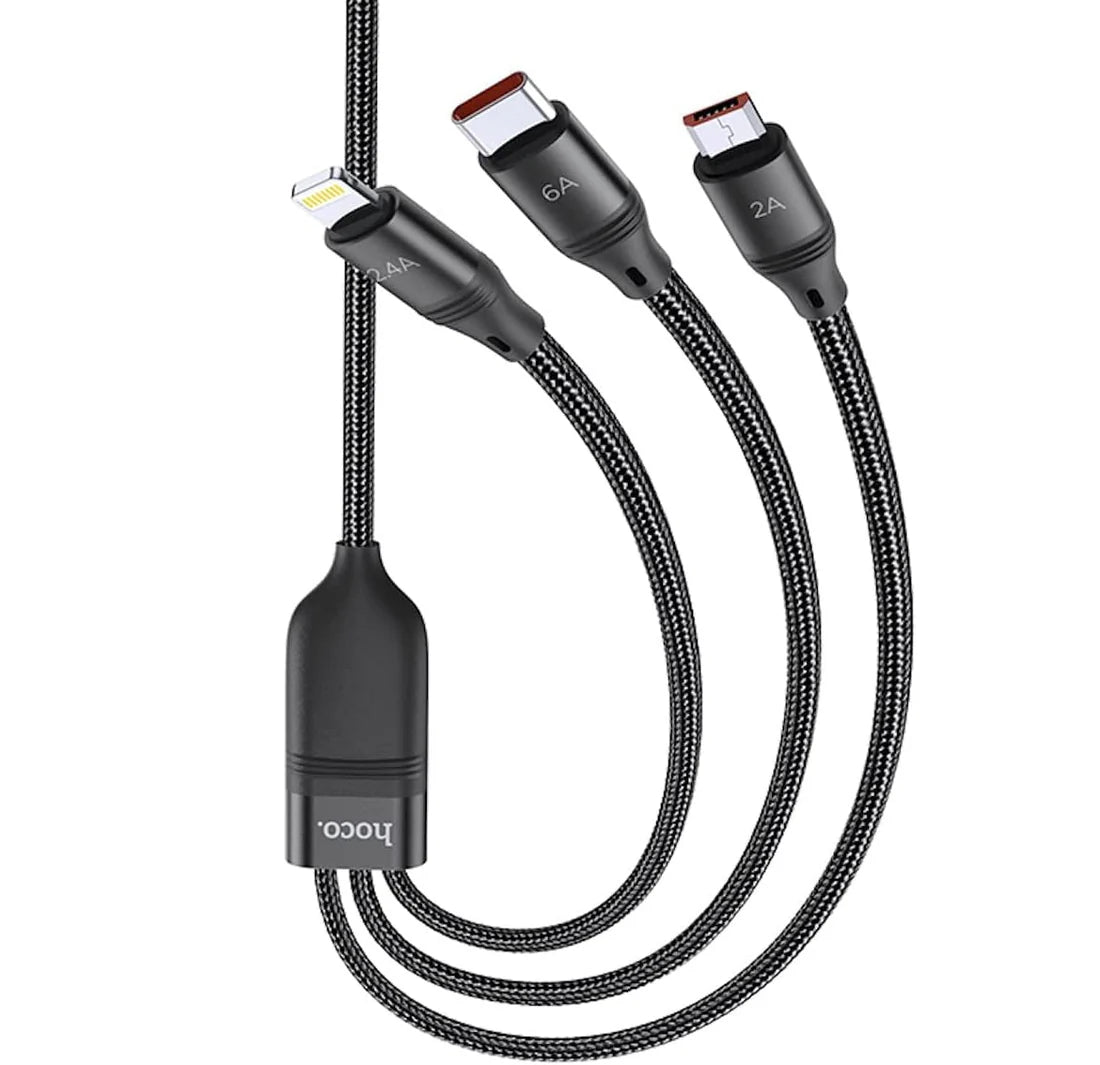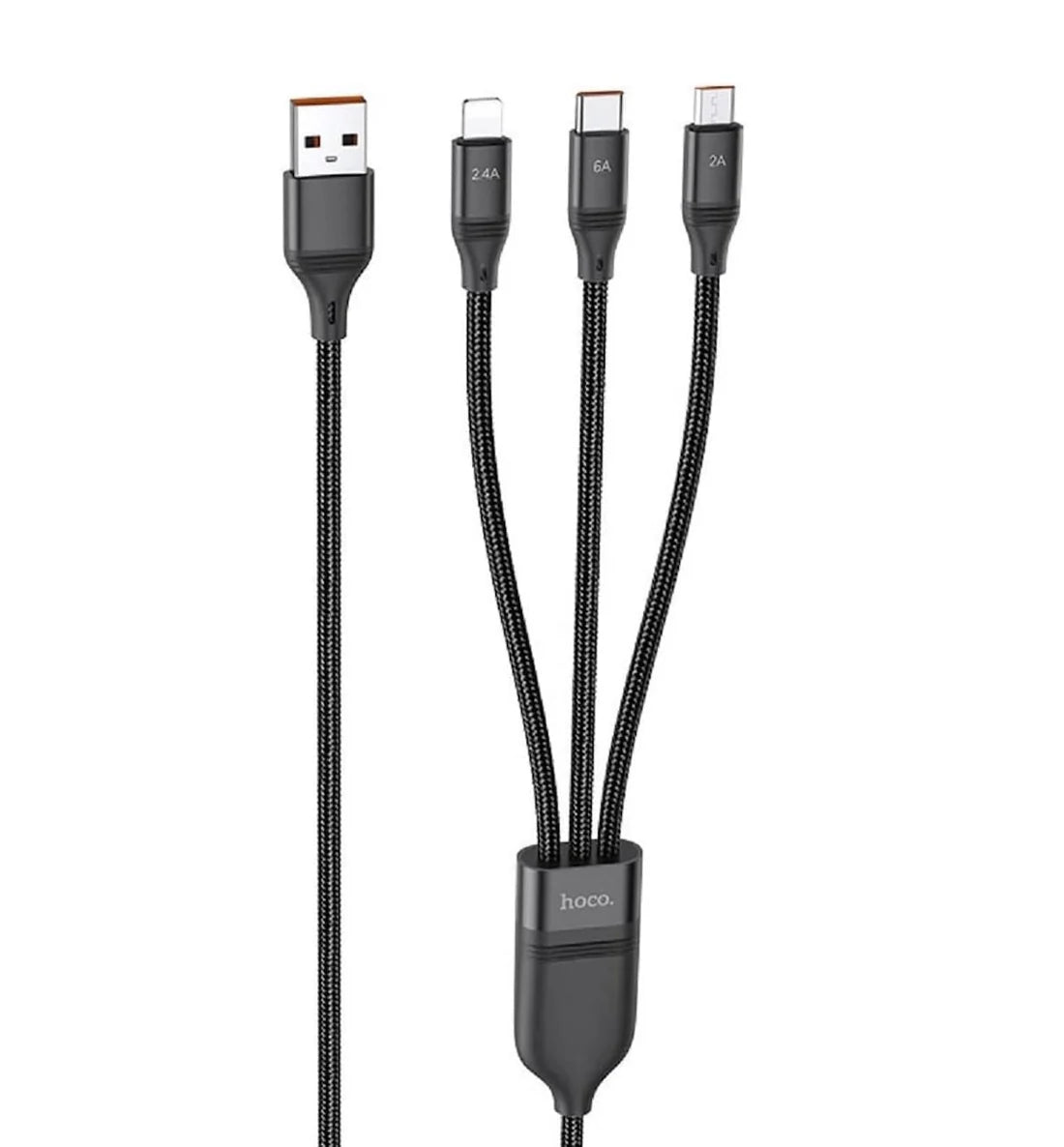 The Hoco 3-in-1 USB (U104) cable offers universal compatibility and fast, safe charging—all in one compact and durable design.